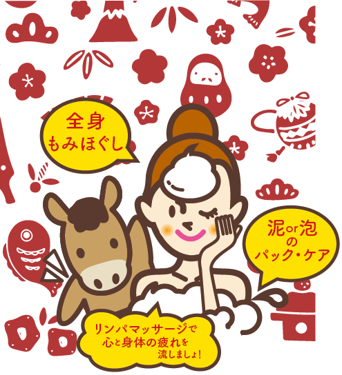 お肌をピカピカに磨く効果だけでなく、カラダの中に溜まった毒素を毛穴から排出し、お肌本来の治癒力を引き出し、あなたの健康的な美を引き出します。ニキビや吹き出物が気になる方にもおすすめです。泡パック・ケア 泥パック・ケア