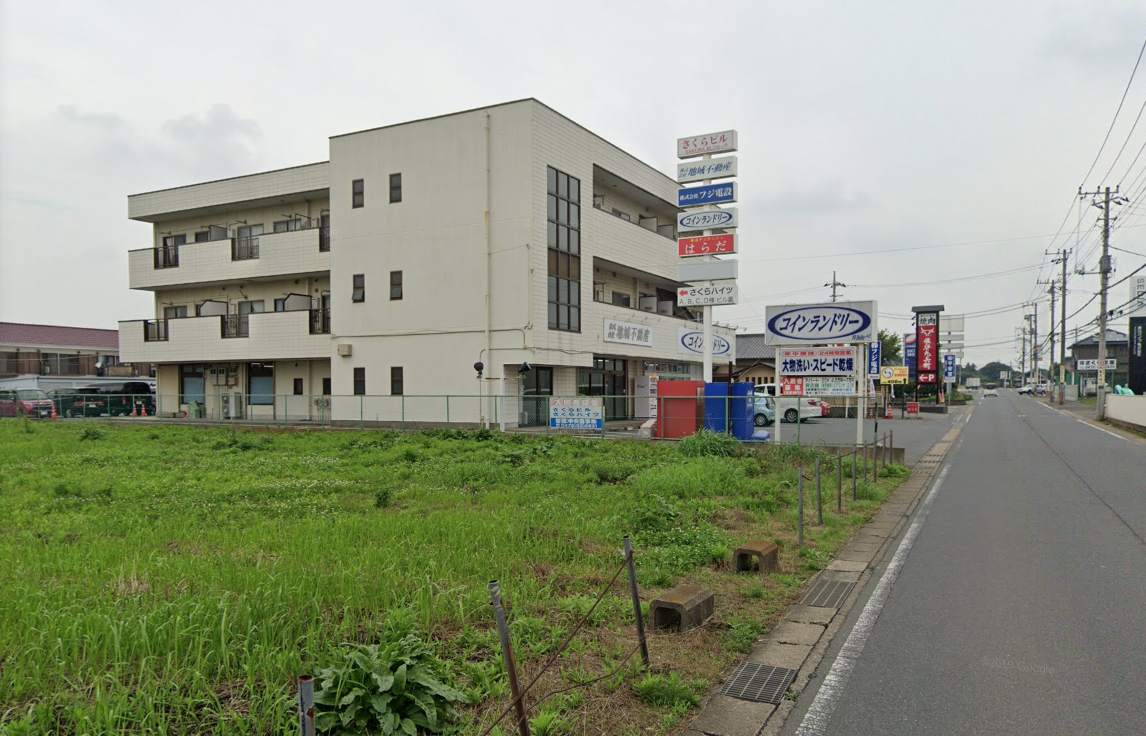 富里インター出口から左折し 409号線を成田方面に向かい 大阪王将とPCデポのある信号を右折し ジョイフルホンダのある信号 を通り過ぎ しばらく進んだ左手 1Fにコインランドリーがあるビル